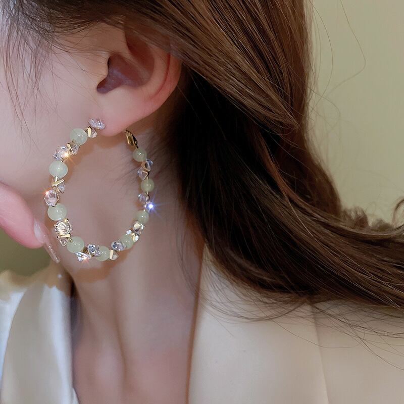送料無料 KAITIN シルバー針クリスタルジルコンサークルイヤリングライト高級高度な気質イヤリング 指輪 銀 AE88788785945086334