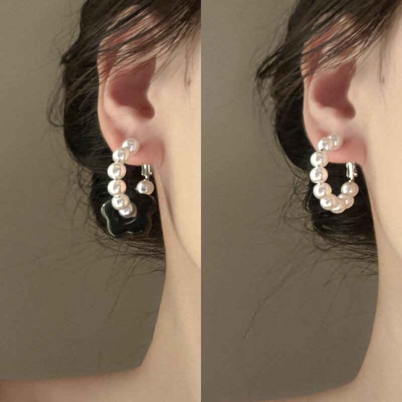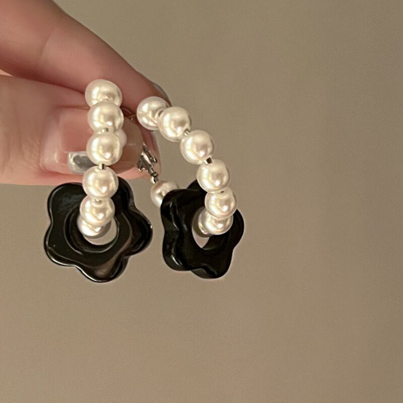 送料無料 KAITIN フレンチヴィンテージパール女性のフープイヤリング気質文学ブラックフラワーイヤリング人格アクセサリー 真珠 指輪 フラワーデザイン ビンテージ AE88788778944502879