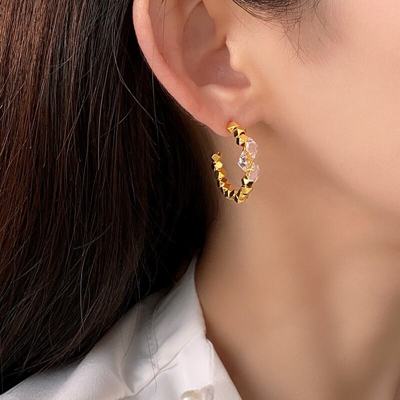 送料無料 KAITIN ジルコンスクエア C 字型女性イヤリングミニマルジュエリーライト高級気質プレミアムイヤリングガールギフトパーティー 指輪 スクウェア AE88788758682927505