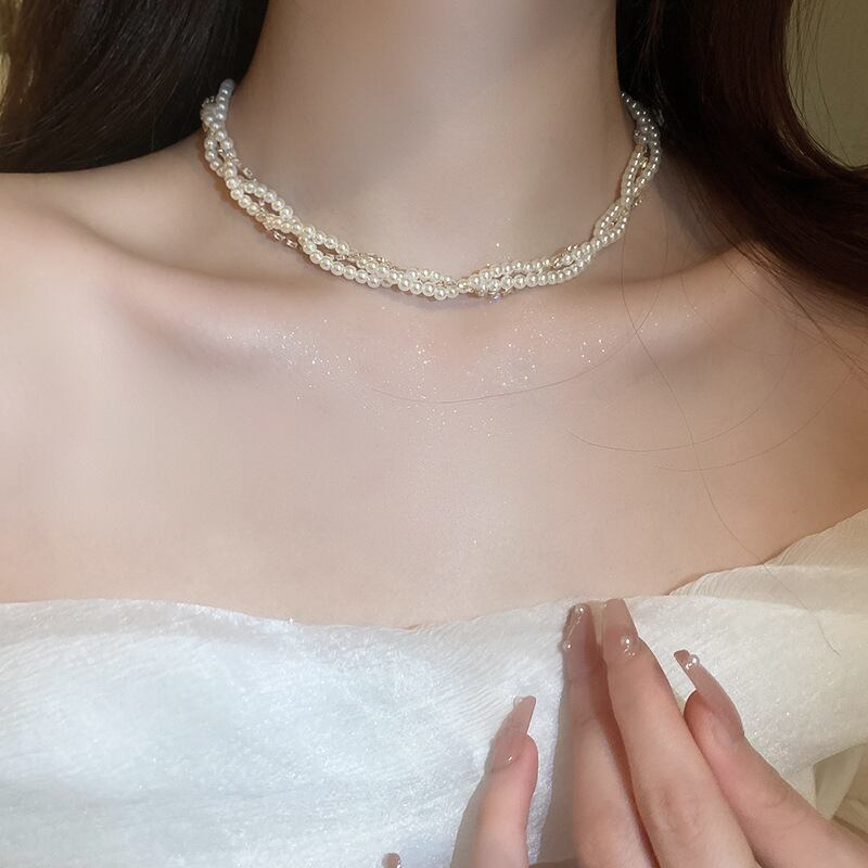 送料無料 KAITIN ジルコンパールラップ多層ネックレス女性の気質ネックレスチェーンガールのジュエリー レース 真珠 AE88788766945181149