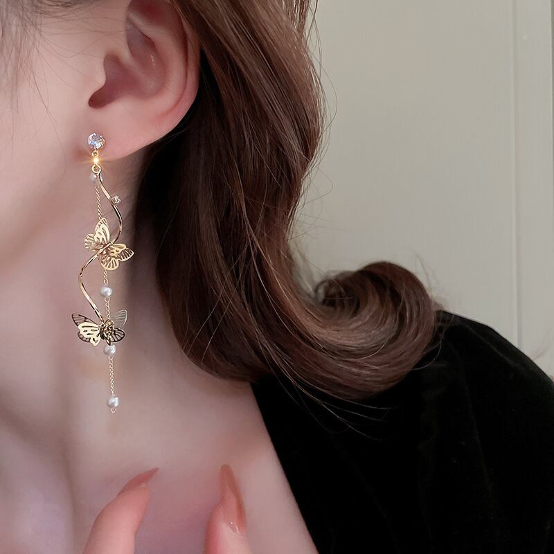送料無料 ダイヤモンド蝶電話パールイヤリングパーソナライズされた気質女性イヤリング KAITIN ゴールドメッキジュエリー 真珠 指輪 AE88788778832205895