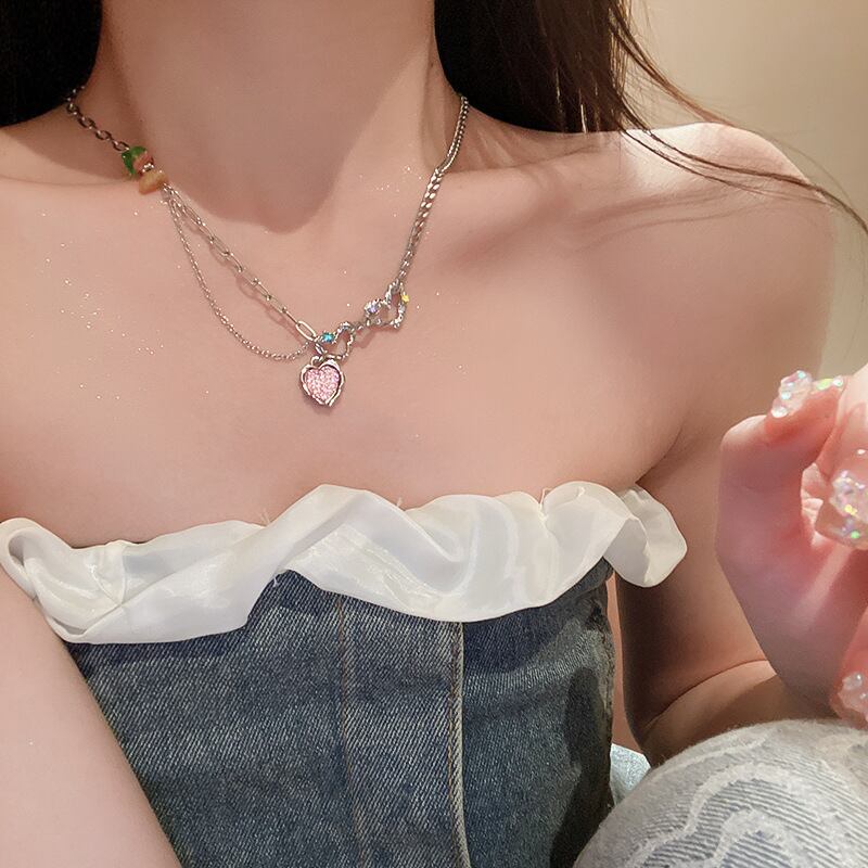 送料無料 カラフルなダイヤモンドハートネックレス女性の首輪チェーンペンダント気質ネックチェーン女性ネックレスアクセサリーパーティー レース AE88788757750875215