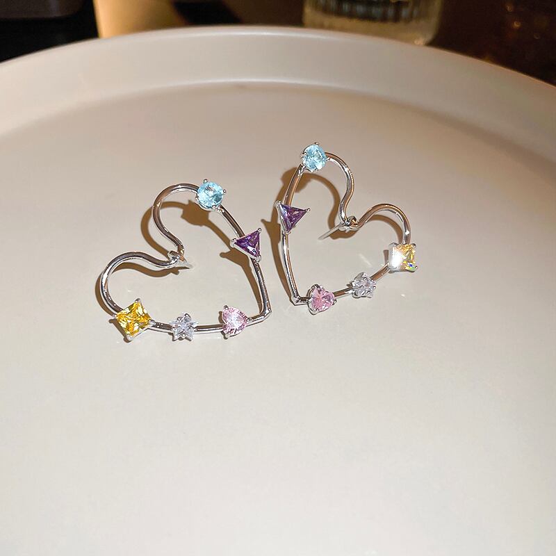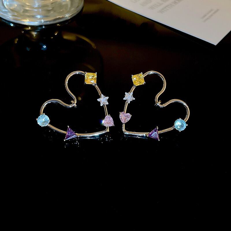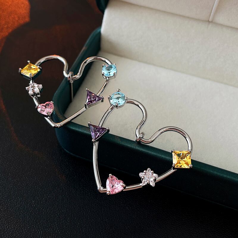 送料無料 KAITIN カラフルなジルコンハートイヤリング女性パーソナライズされたシンプルな中空フープイヤリング高級ジュエリーガールギフト 指輪 AE88788719046522724