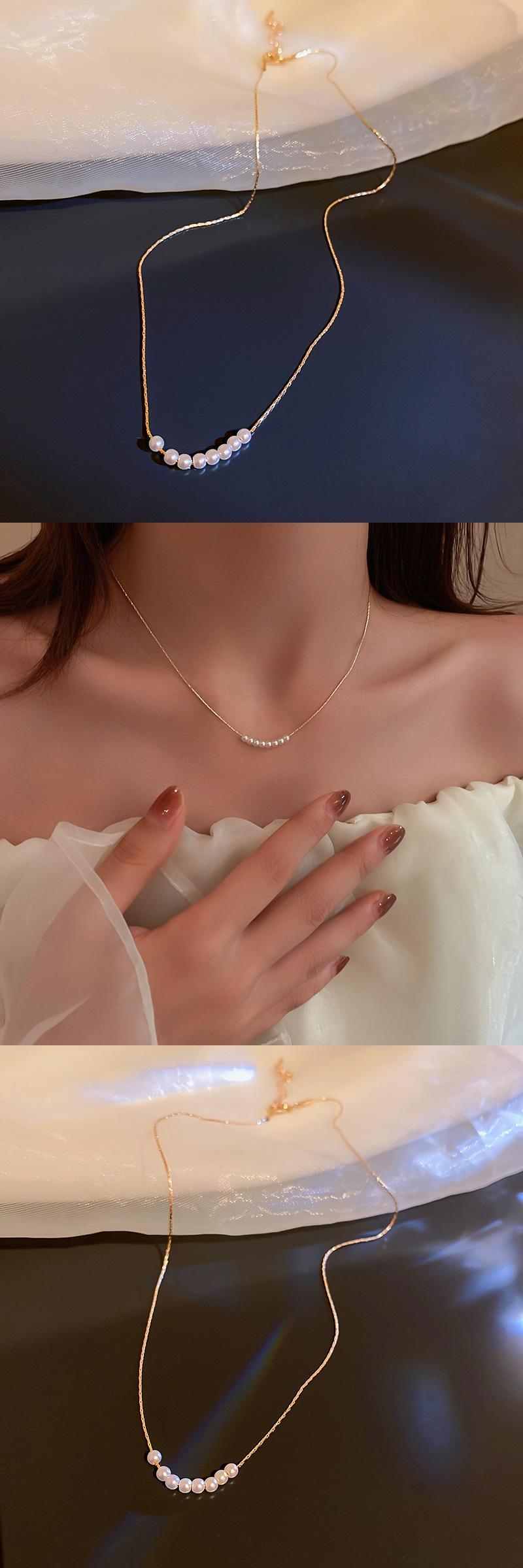 送料無料 KAITIN シンプルなパール幾何学ネックレス女性の細いチェーンライト高級首輪チェーンミニマル気質ネックチェーン女性 レース 真珠 AE88788766007865742