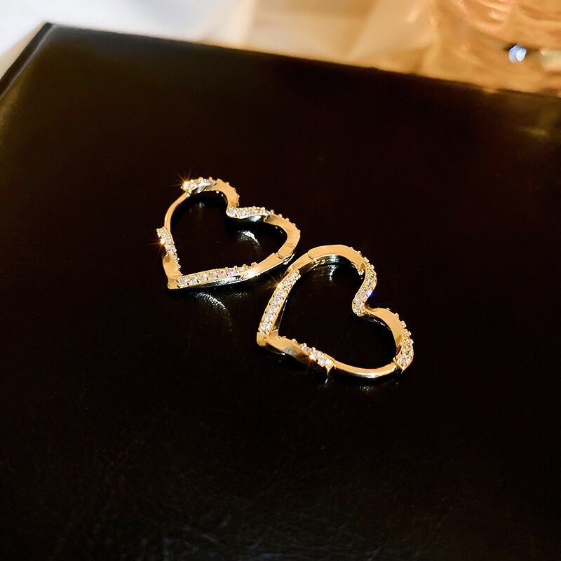 送料無料 KAITIN 中空ジルコンハートイヤリング女性の気質ゴールドメッキフープイヤリングジュエリー 2023 指輪 AE88788721861980717