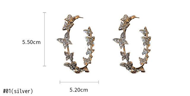 送料無料 KAITIN 蝶パネルラウンドダイヤモンドフープイヤリング女性誇張イヤリング人格気質ジュエリー 指輪 AE88788768920348882