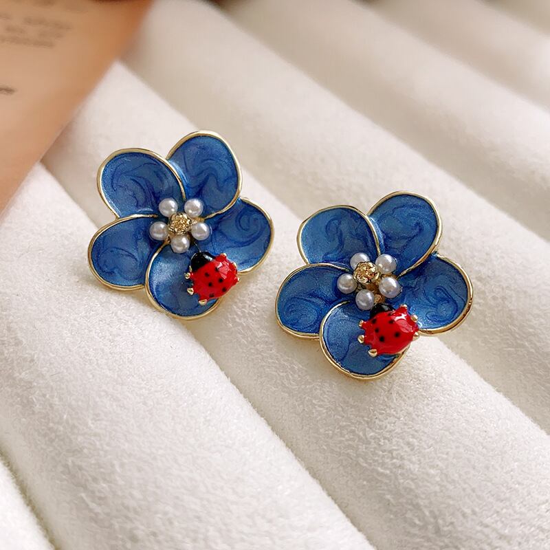 送料無料 KAITIN ping オイルパールフラワーイヤリング女性ヴィンテージライト高級シルバー針スタッドピアスガールジュエリーギフト 真珠 指輪 フラワーデザイン 銀 ビンテージ AE88788752177794092