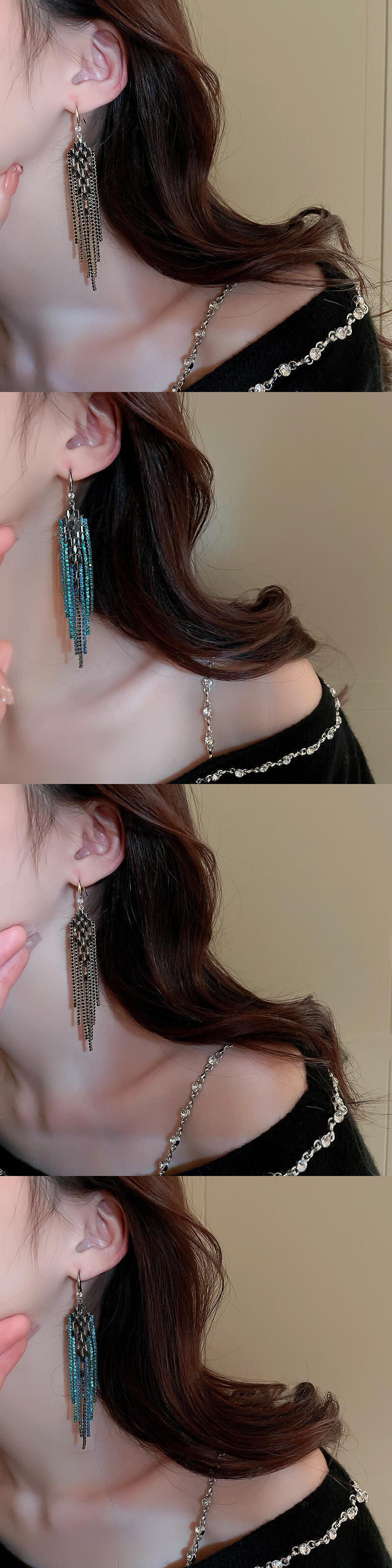 送料無料 KAITIN ダイヤモンド象嵌幾何学チェーン電話イヤリング女性パーソナライズされた気質ミニマリスト耳飾りジュエリー 指輪 AE88788740621897380