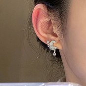 送料無料 KAITIN ジルコンラップローズブロッサムイヤリング女性センスシルバー針スタッドピアスムーンジュエリーパーティーガール 指輪 銀 AE88788742305540692