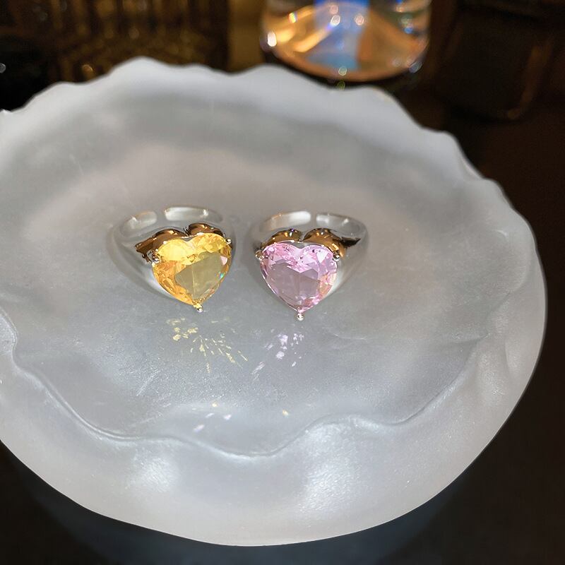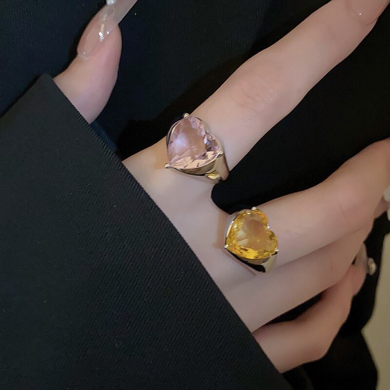 送料無料 KAITIN ジルコンハートオープンリング女性シンプルで甘い気質人差し指リング多用途手芸 大人ガーリー スウィート キュート カジュアル 指輪 AE88788780843935914