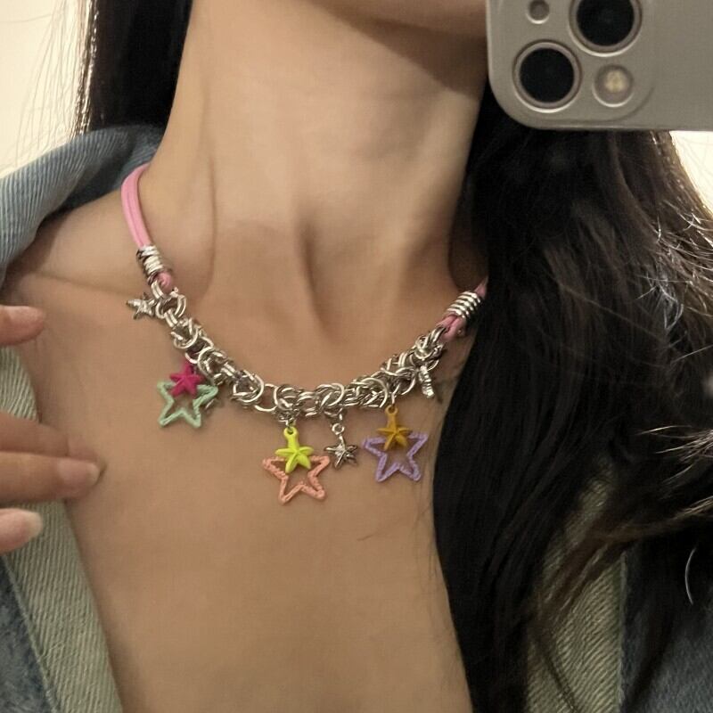 送料無料 五芒星 Y2k ネックレス女性パーソナライズされた首輪チェーンレザーペンダント Neckalces Kpop スタイルガールジュエリー レース AE88788728095726521