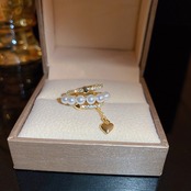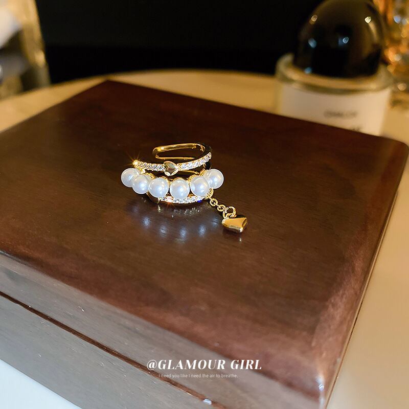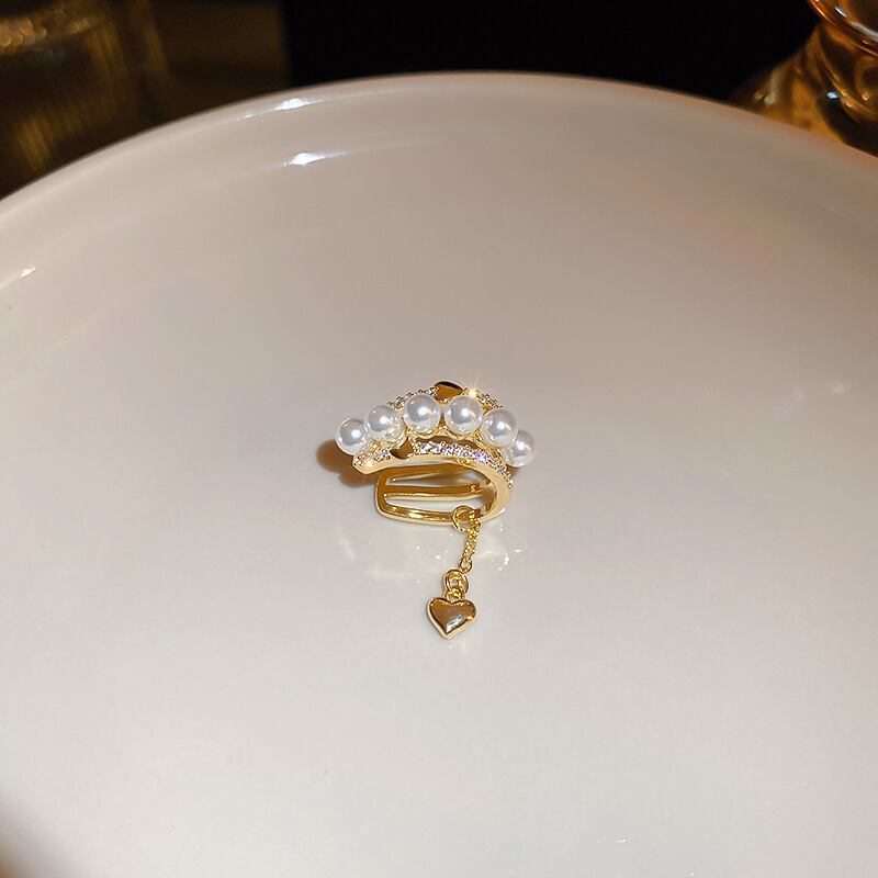 送料無料 KAITIN 中空三層ジルコンパールハート女性イヤリング気質ゴールドメッキジュエリーチェーン電話耳クリップイヤリング 真珠 指輪 AE88788786582766161