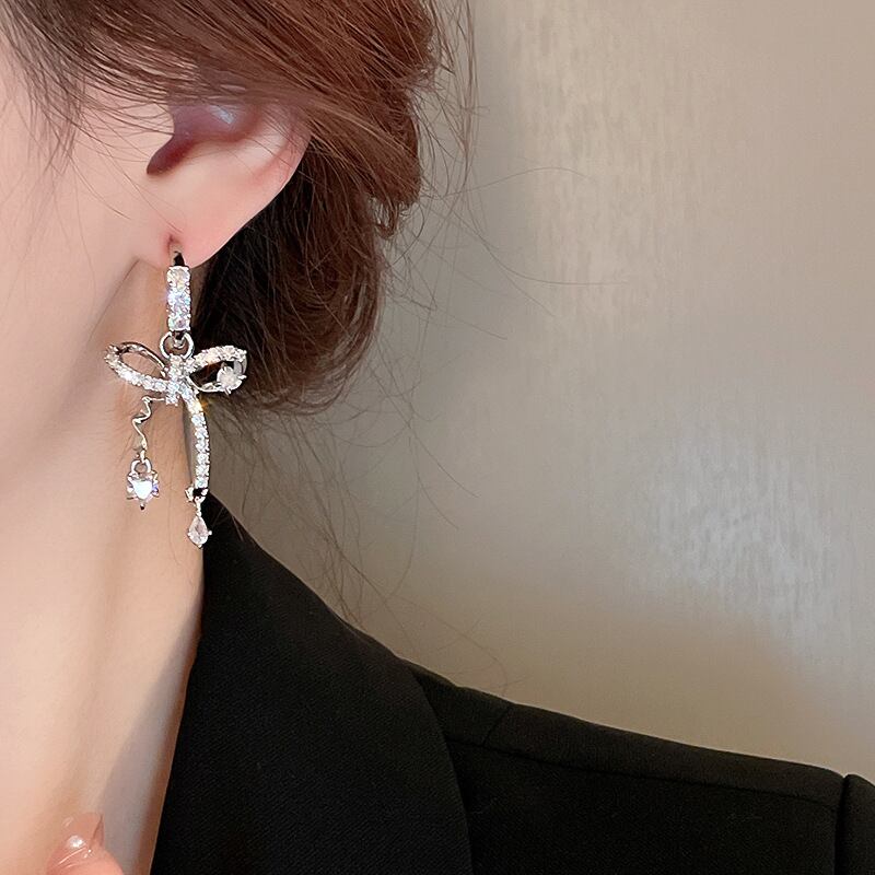 送料無料 KAITIN 非対称ハートジルコン女性イヤリングパーソナライズされたボウノットクリエイティブフープイヤリング女性多用途ジュエリー リボン 指輪 AE88788729339644108
