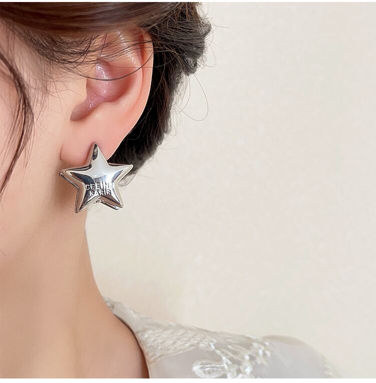 送料無料 KAITIN 手紙五芒星イヤリング女性シンプルなユニークな人格ミニマリストイヤリング気質アクセサリー女性 AE88788731208144822