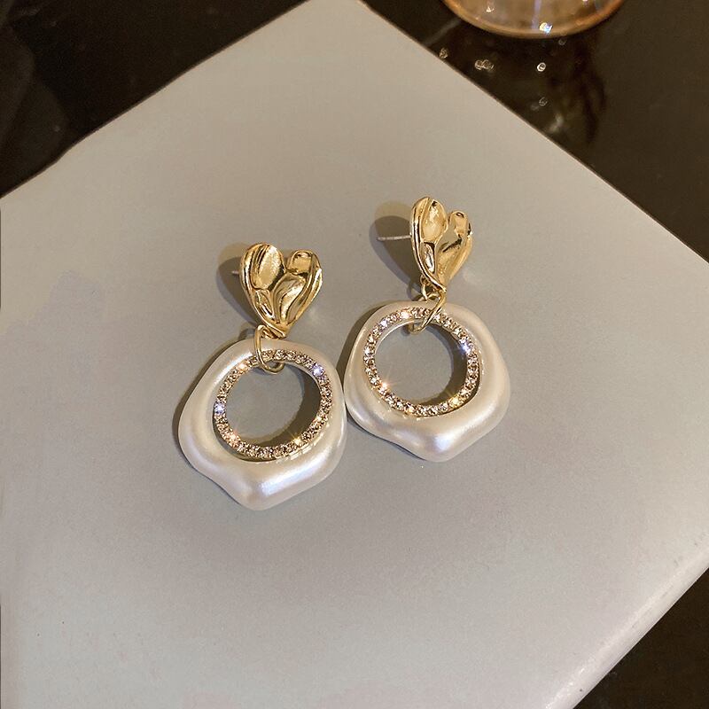 送料無料 KAITIN パールダイヤモンドハートイヤリング女性幾何学的なサークルイヤリング気質人格ジュエリー 真珠 指輪 AE88788748786508108