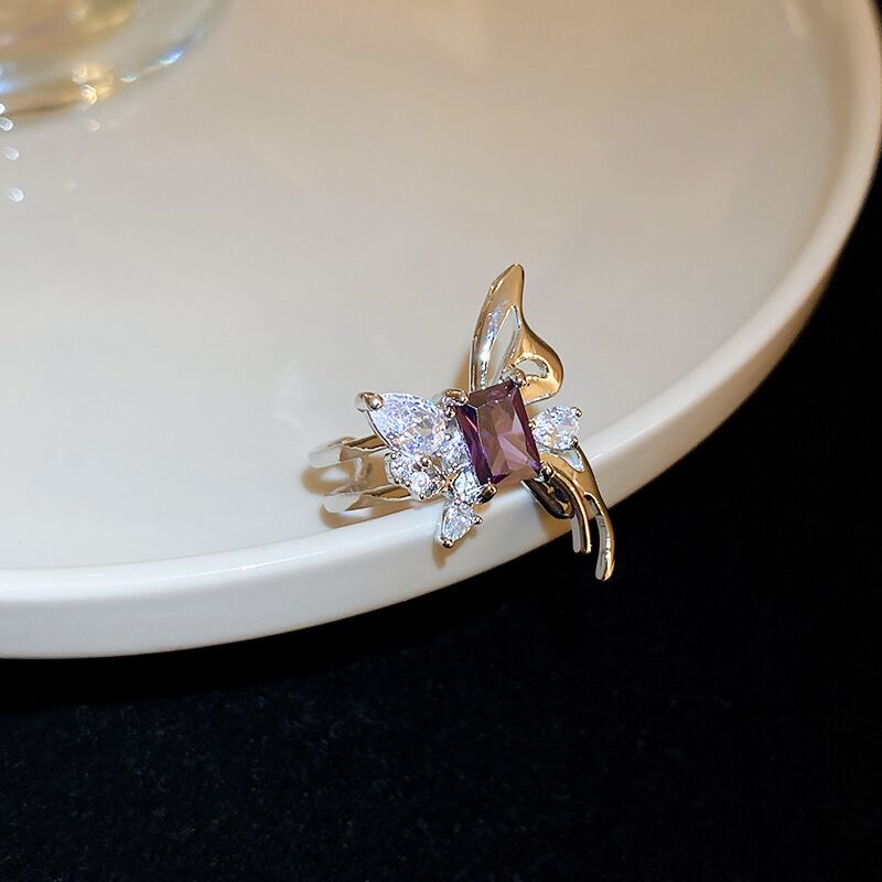 送料無料 KAITIN ジルコン蝶リング女性人差し指調節可能な開口部リング気質 y2k アクセサリー 2023 で アジャスタブル 指輪 AE88788735404023704