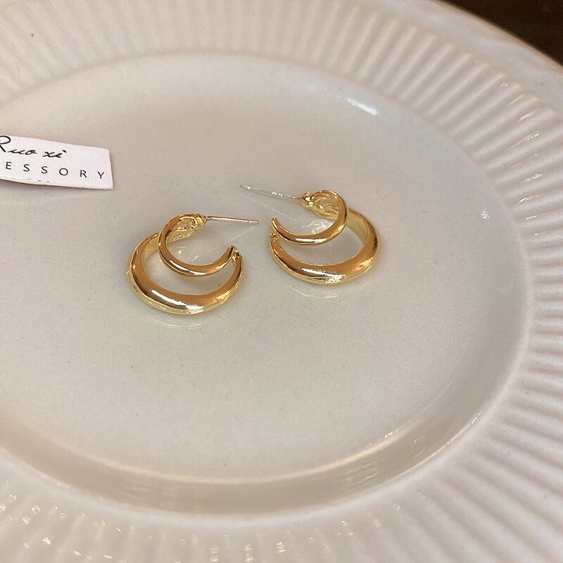 送料無料 KAITIN 中空 C 字型イヤリング女性トレンディな通勤二重層絶妙なフープイヤリング - エンドジュエリー 指輪 AE88788711786725194