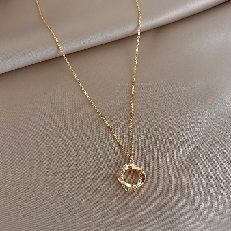 送料無料 ジオメトリクリスタルペンダントネックレス女性 14k ゴールドチェーンジルコンチョーカーネックレス絶妙なパーティージュエリー レース AE88788786728052288