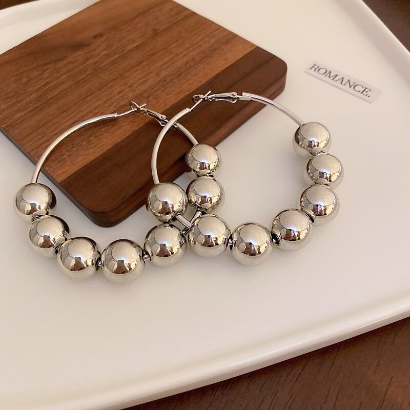 送料無料 KAITIN パンクフープイヤリング女性の人格金属幾何学的なボールビーズラウンドイヤリングパーティージュエリーギフト 指輪 AE88788730442108429