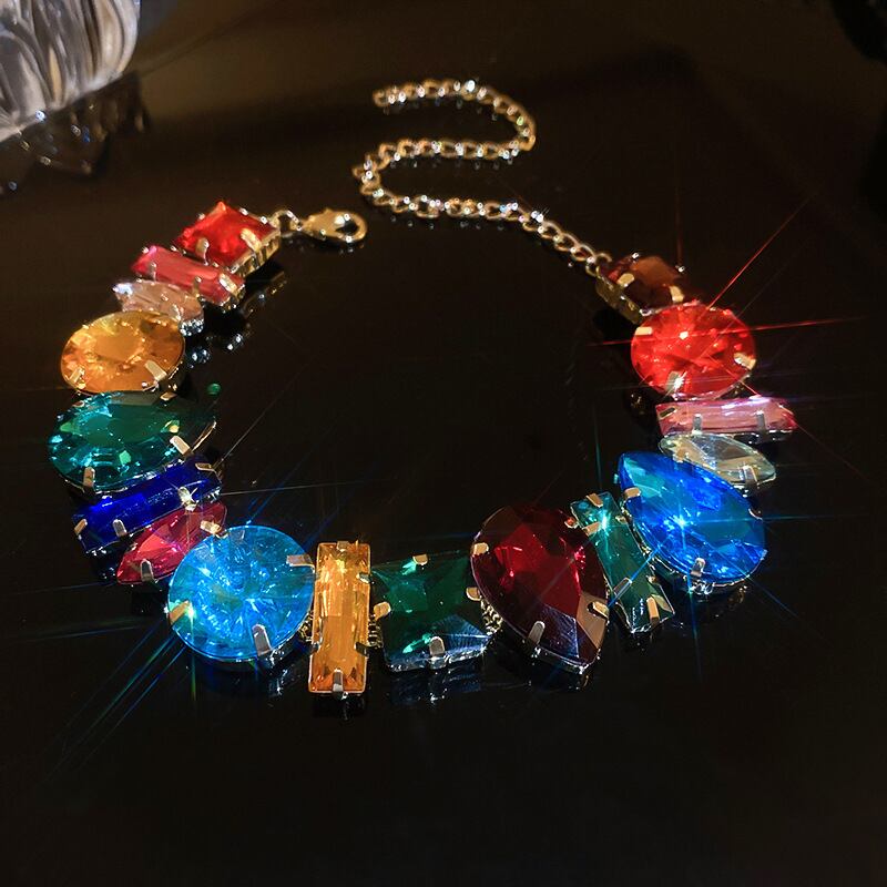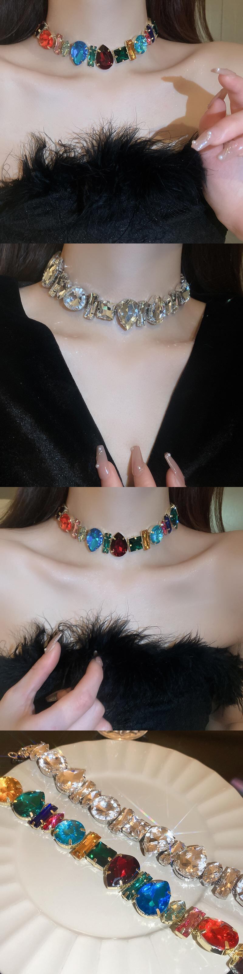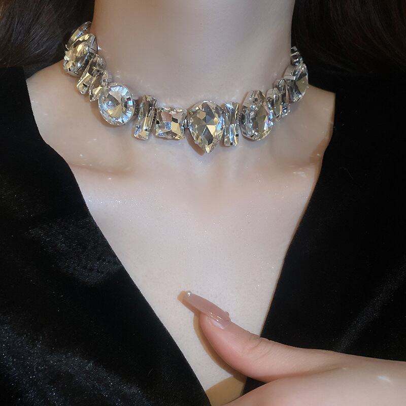 送料無料 幾何学的なクリスタルチョーカーネックレス女性水鎖骨チェーンネックレスステートメントジュエリーギフト 2023 で レース AE88788730885714853