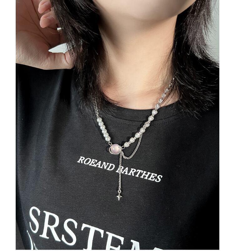 送料無料 ハートパール樹脂ネックレス女性パーソナライズされた四芒星鎖骨ネックチェーン美的ジュエリー 2023 で レース 真珠 AE88788764710308841