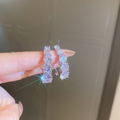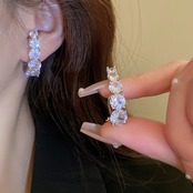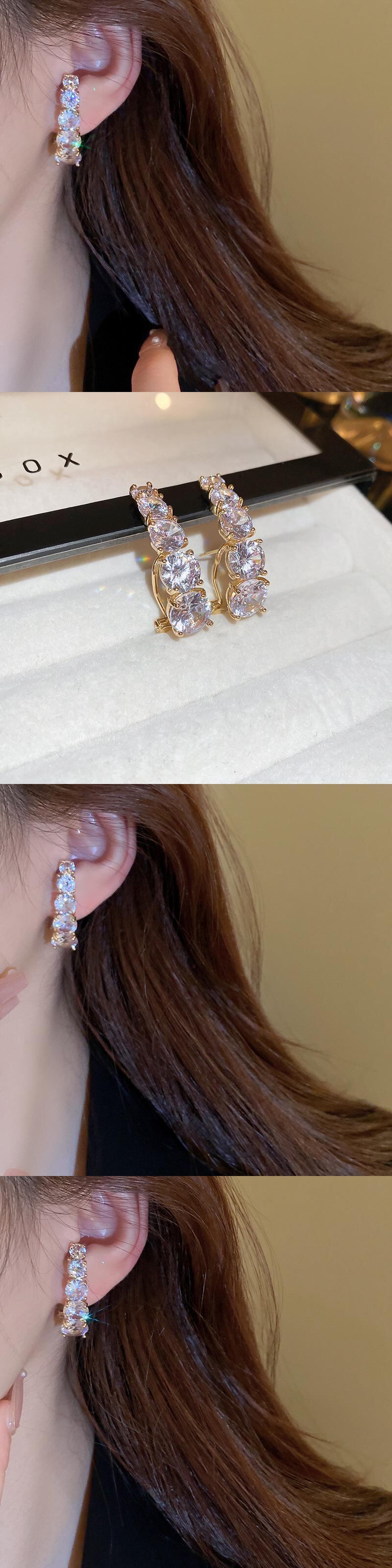 送料無料 KAITIN 湾曲したジルコンイヤリング女性の気質通勤フープイヤリンググレードジュエリーパーティー 指輪 AE88788737133472334