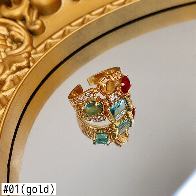 送料無料 KAITIN ジルコンスクエア楕円三層オープンリング女性エスニックスタイル高度なセンスステートメントジュエリー 指輪 スクウェア AE88788736099489954