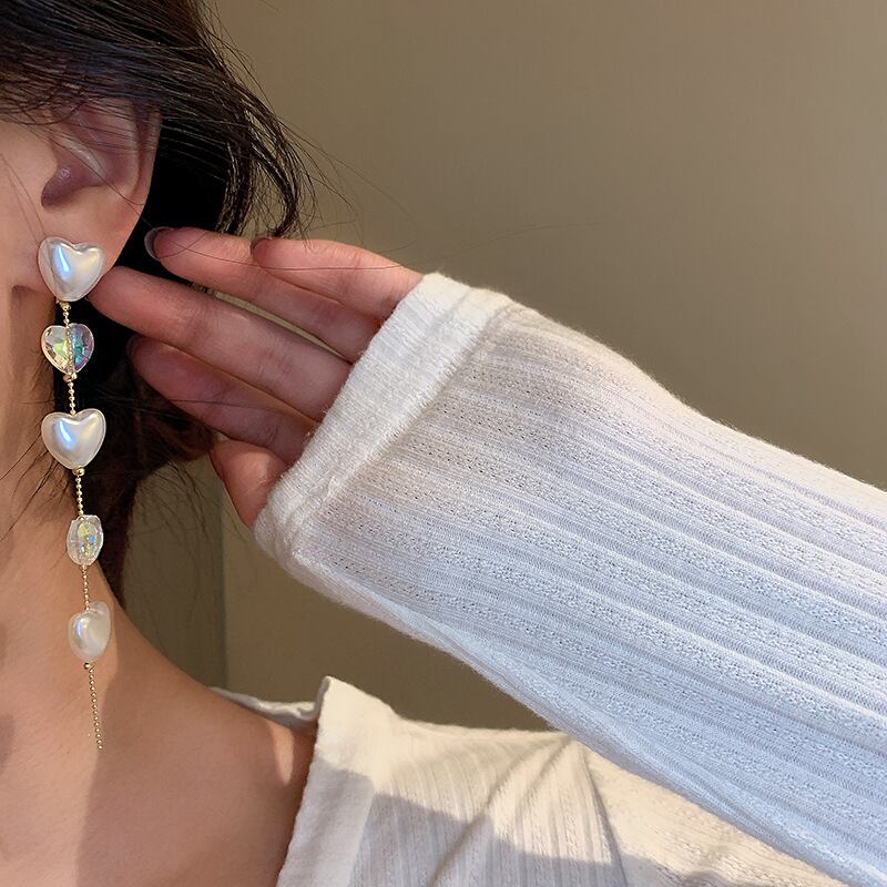 送料無料 KAITIN クリスタルパールパール Tel イヤリング女性の気質ロングイヤリングライト高級ジュエリーギフト 真珠 指輪 AE88788788438136550