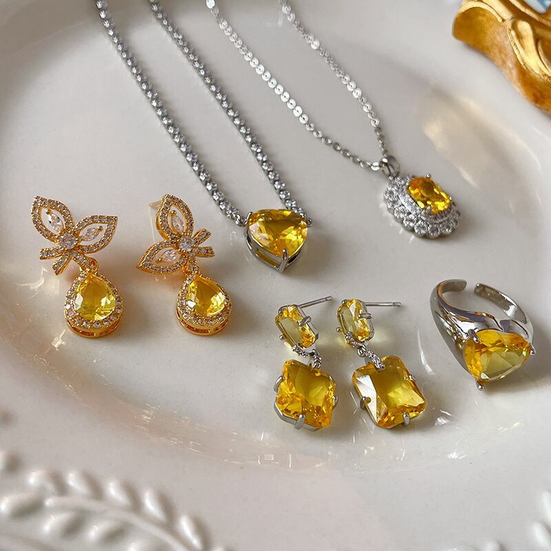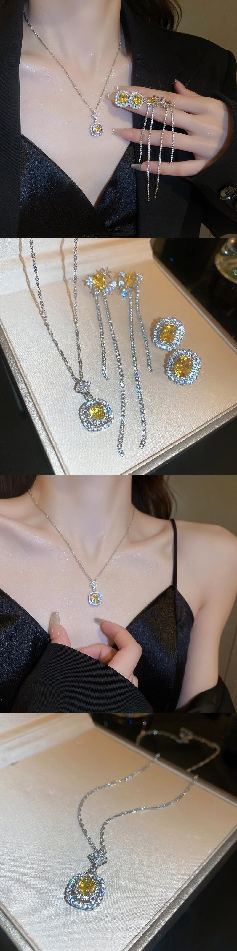 送料無料 KAITIN イエロージルコンペンダントネックレス女性イヤリング女性のリング絶妙な結婚式婚約ジュエリーセット レース 指輪 AE88788757072403034
