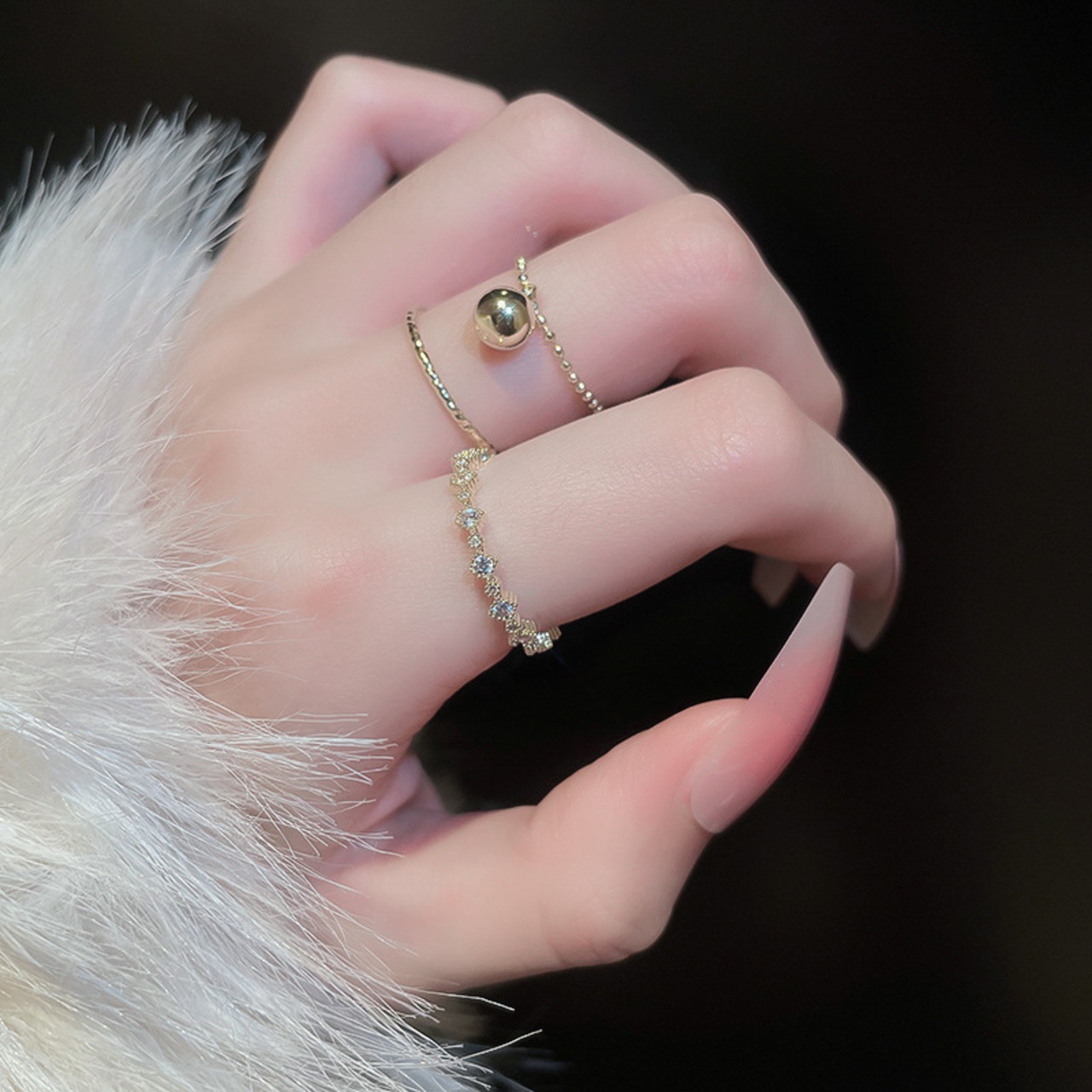 送料無料 3 個ジルコンラウンドビーズ無地リング女性少数派イン人差し指リングチャームハンドピースジュエリー 指輪 AE88788779178135115