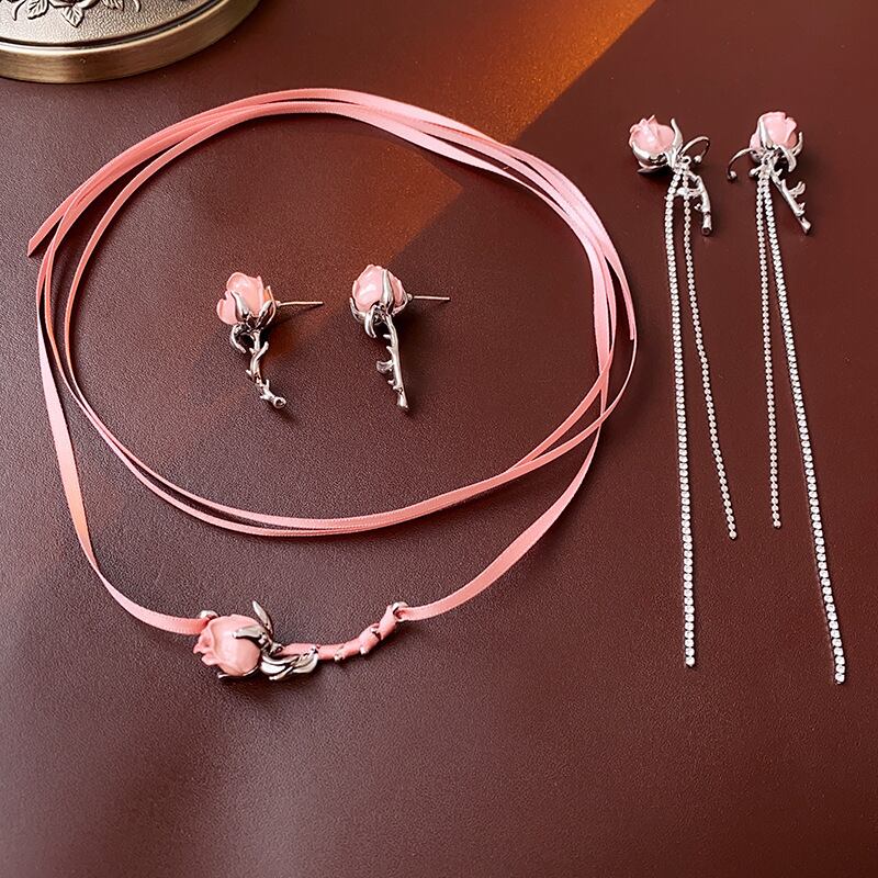 送料無料 KAITIN シルバー針ローズフラワーロングテルネックレス女性ライト高級誇張ジュエリー レース フラワーデザイン 銀 AE88788740360766784