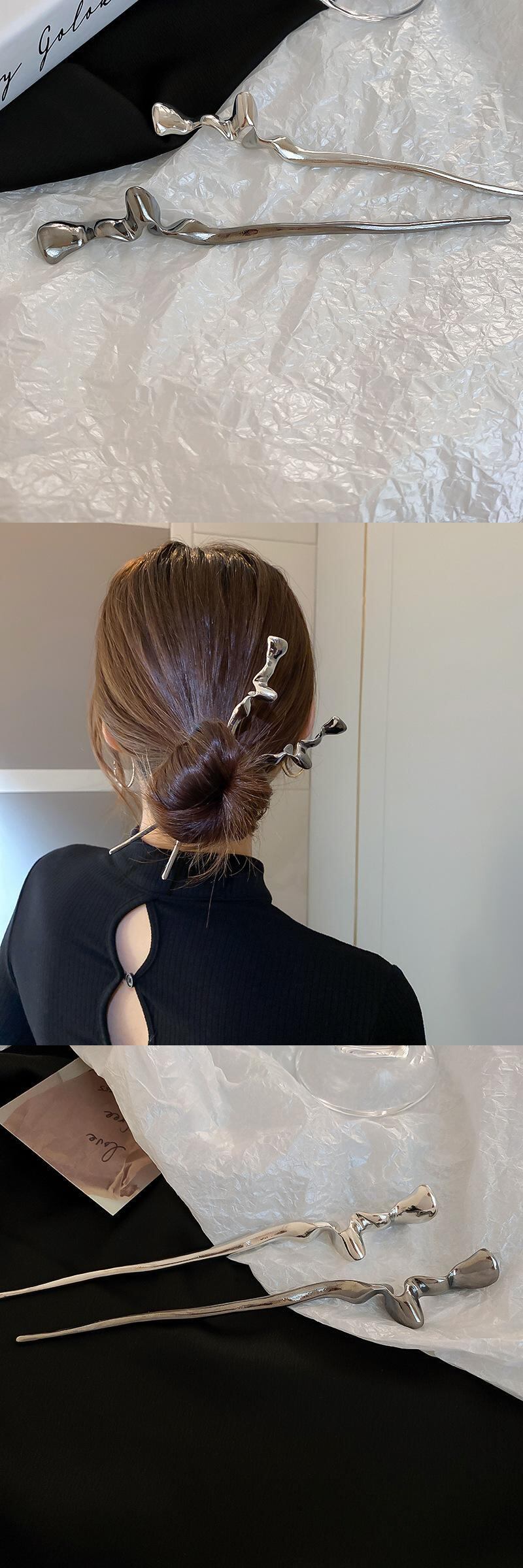 送料無料 KAITIN 金属幾何学的な不規則なツイスト櫛とスティックミニマリストヘアピンヘアツールジュエリーヘアアクセサリー AE88788761774472821