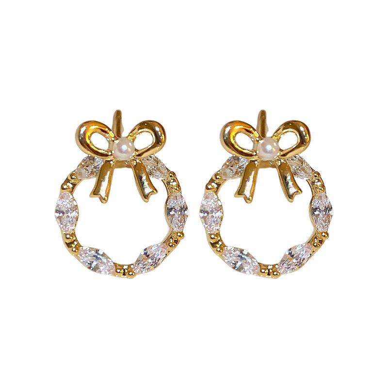送料無料 KAITIN ジルコンパール弓女性イヤリングパーソナライズされた幾何学的なライト高級イヤリング多用途ゴールドメッキジュエリー リボン 真珠 指輪 AE88788776280144334