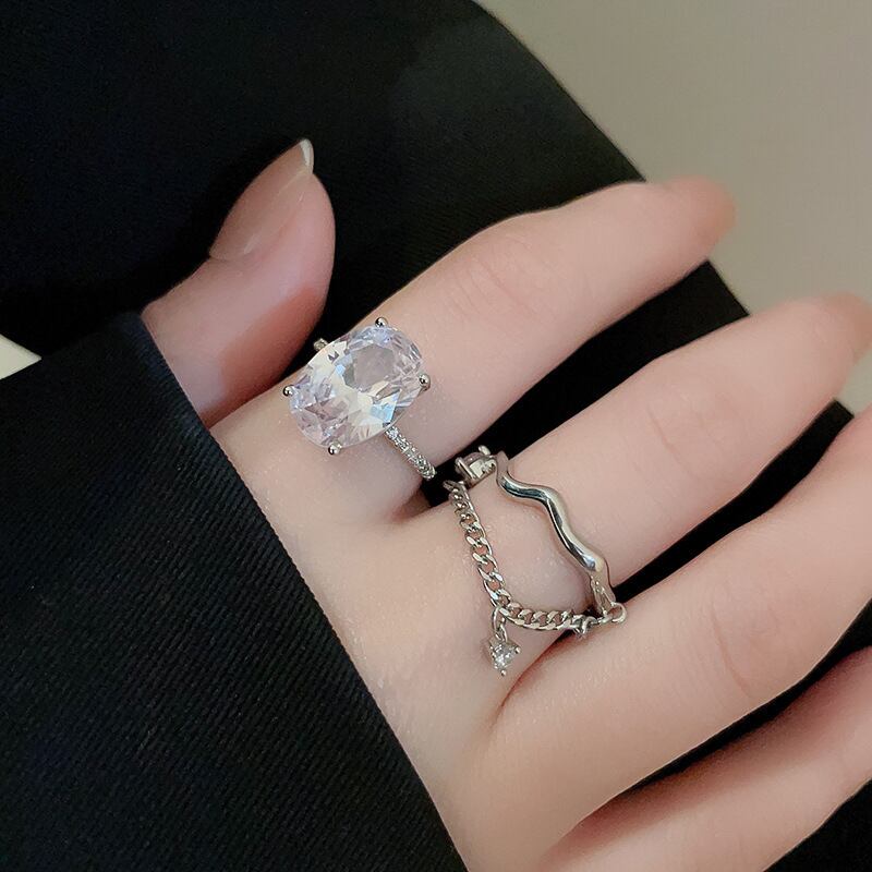 送料無料 KAITIN ジルコンチェーンウェーブオープンリング女性インスタイルリングメタルジュエリーウェディングパーティーギフト 指輪 AE88788777855952887