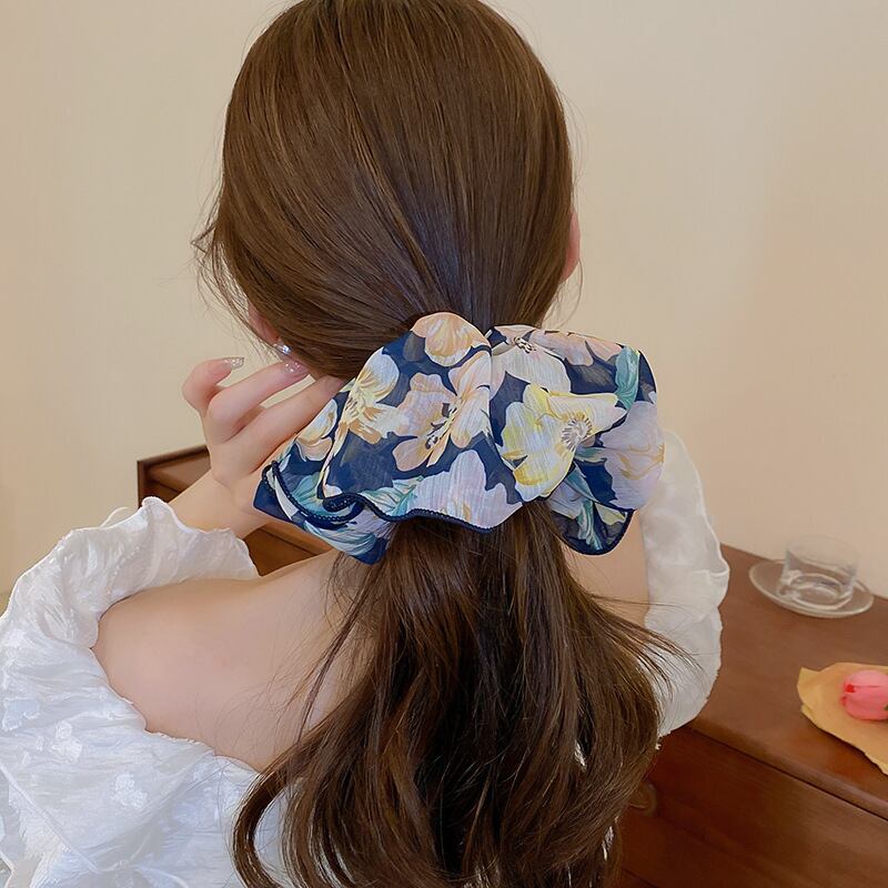 送料無料 プリント特大円形大型ヘアループヘアネクタイ気質ヘアロープフレンチ帽子ヘアアクセサリー AE88788713814558667