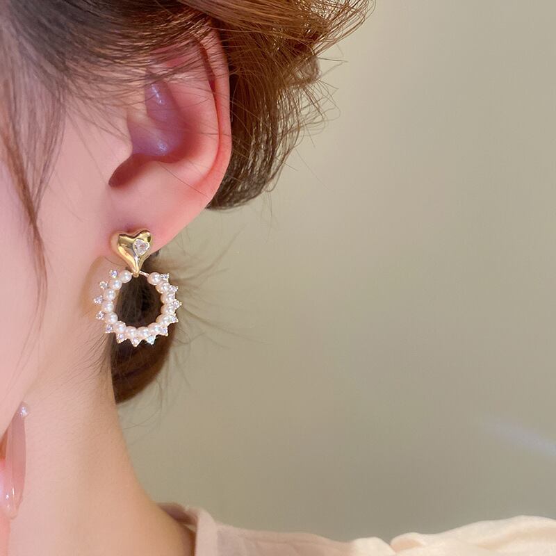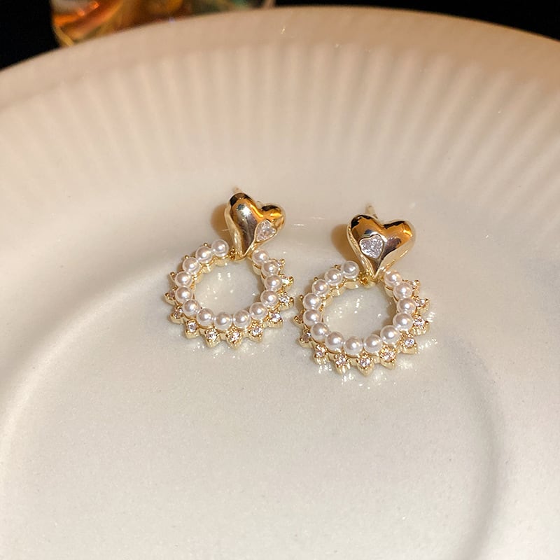 送料無料 KAITIN ジルコンハート中空パールイヤリング女性スタイルの気質ゴールド電着シルバー針イヤリング 真珠 指輪 銀 AE88788753407633579