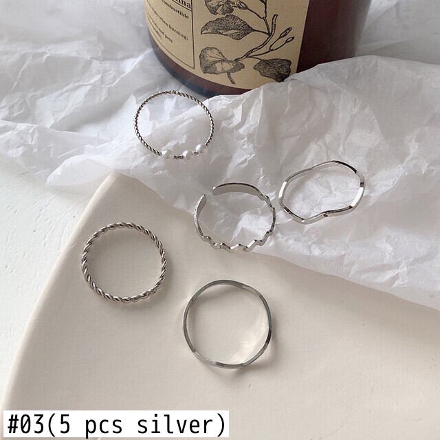 送料無料 KAITIN 7 個パールプレーンリング女性レトロ人格リングミニマリストの気質ハンドジュエリーの組み合わせ 指輪 真珠 AE88788716258874753