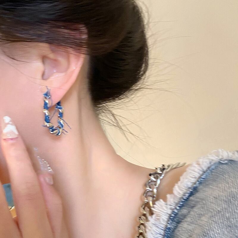 送料無料 KAITIN デニム揚げ生地ツイスト C 字型女性イヤリング気質フープイヤリング女性ジュエリー 2023 指輪 AE88788760022013443