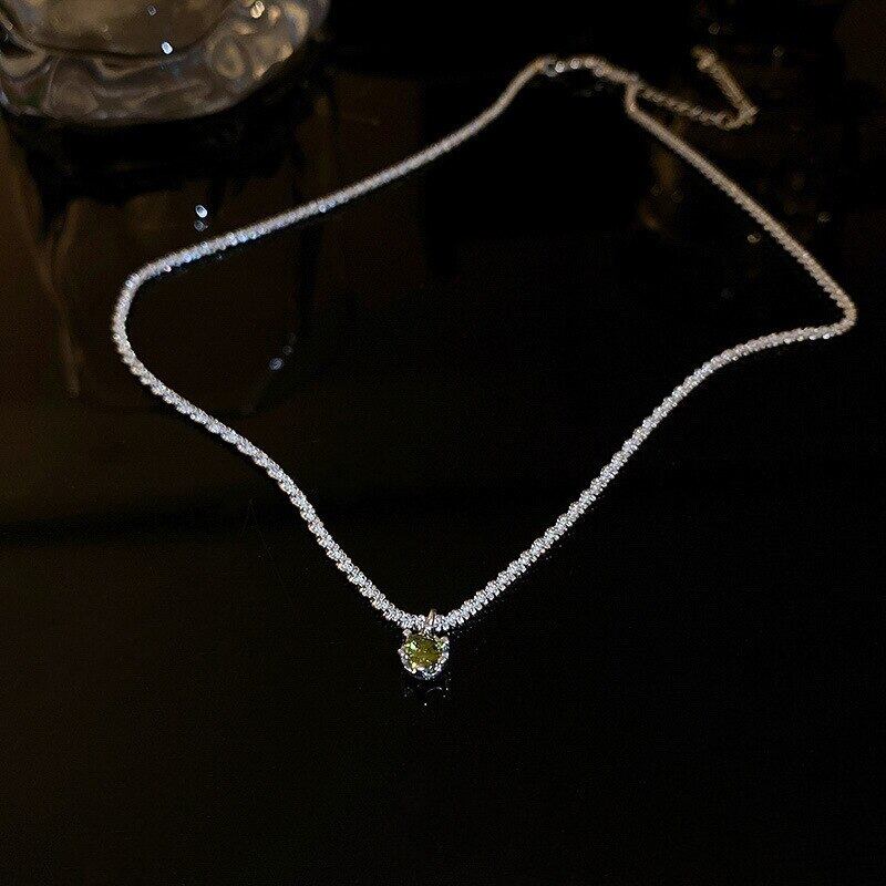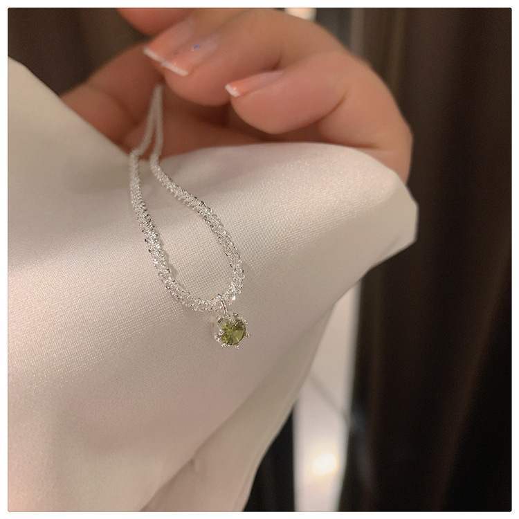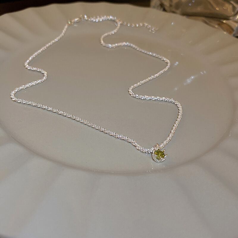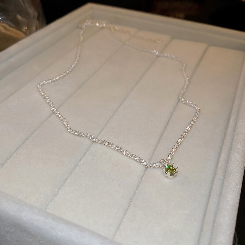 送料無料 KAITIN シルバーネックレス女性シンプルなグリーンアクセサリーダイヤモンドペンダントネックレス気質鎖骨チェーンアートネックレス レース 銀 AE88788745620754565
