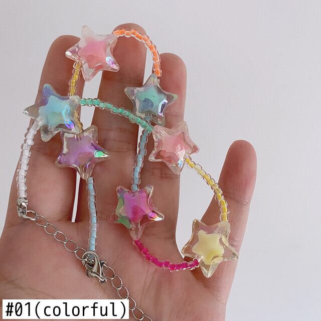 送料無料 KAITIN アクリルスターカラフルなビーズの女性のネックレスパーソナライズされた首輪チェーンおかしいネックレスアクセサリー女性 レース AE88788781864714105