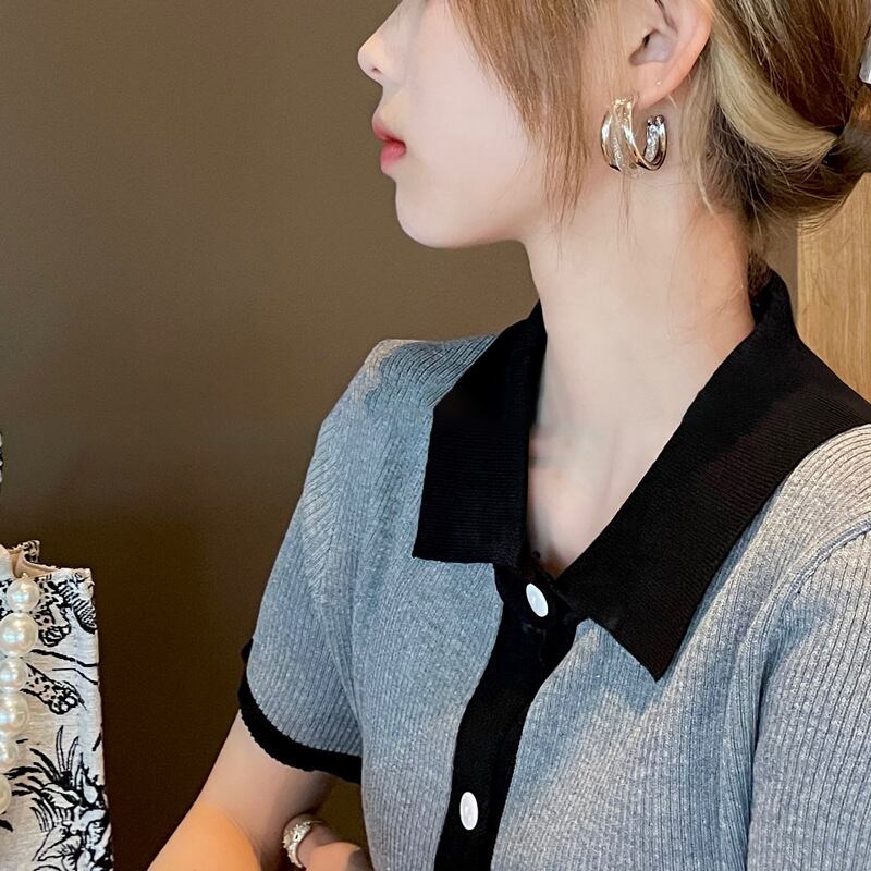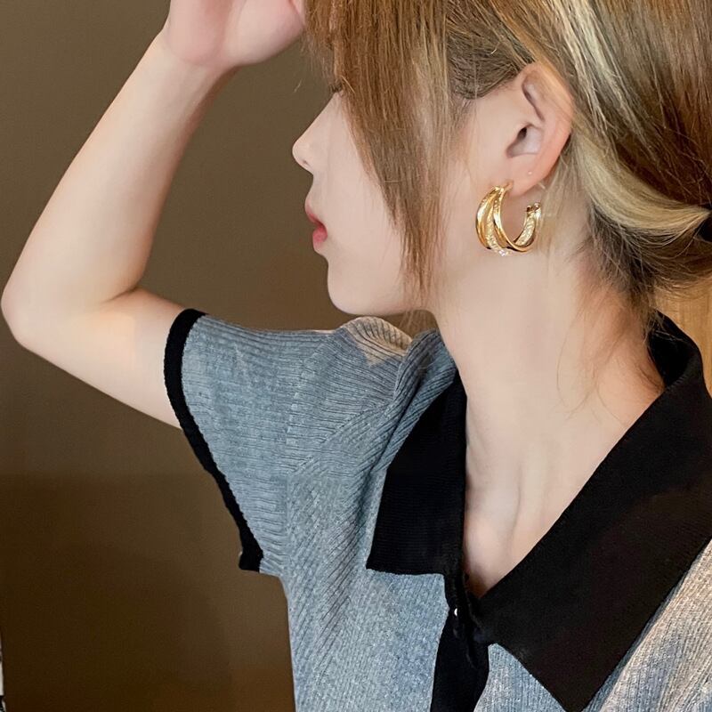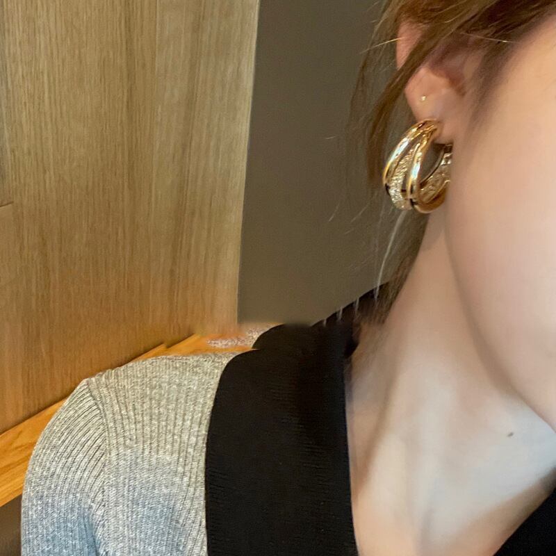 送料無料 象嵌ジルコンダブル C イヤリング女性パーソナライズされた高級フープイヤリング多用途トレンディジュエリー 2023 で 指輪 AE88788749402418287