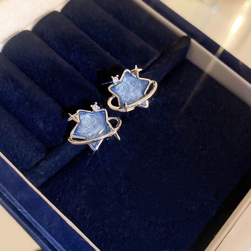 送料無料 KAITIN ダイヤモンド ジルコン レディース イヤリング 樹脂 五角形 星空 シルバー 針 スタッドピアス 豪華 パーティー可能 指輪 銀 AE88788768282386218