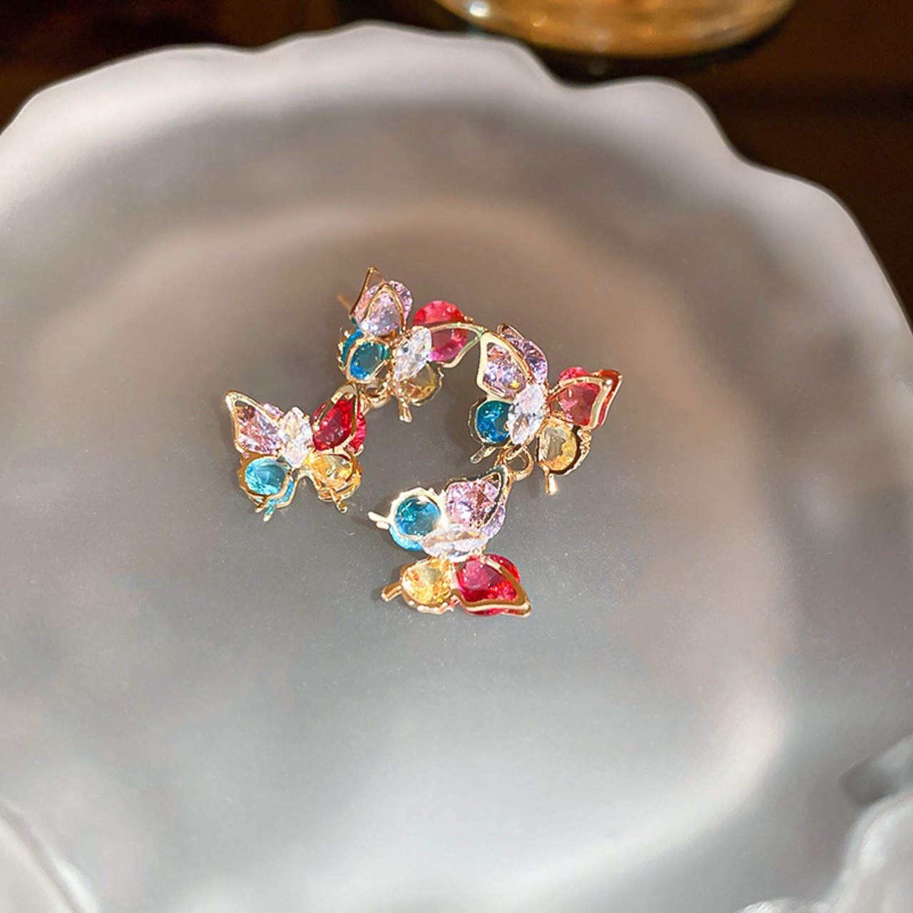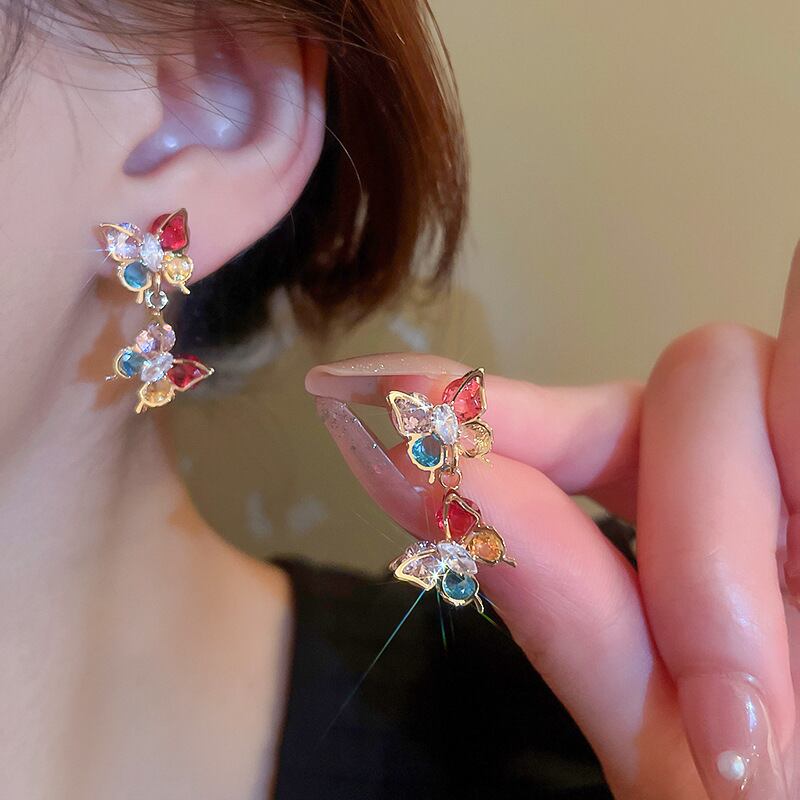 送料無料 KAITIN カラージルコン蝶のイヤリングの女性の美的スタッドイヤリングユニークな 2023 Y2k アクセサリー レッド 指輪 AE88788799217252670