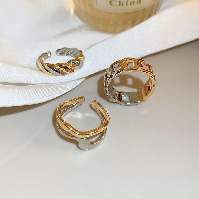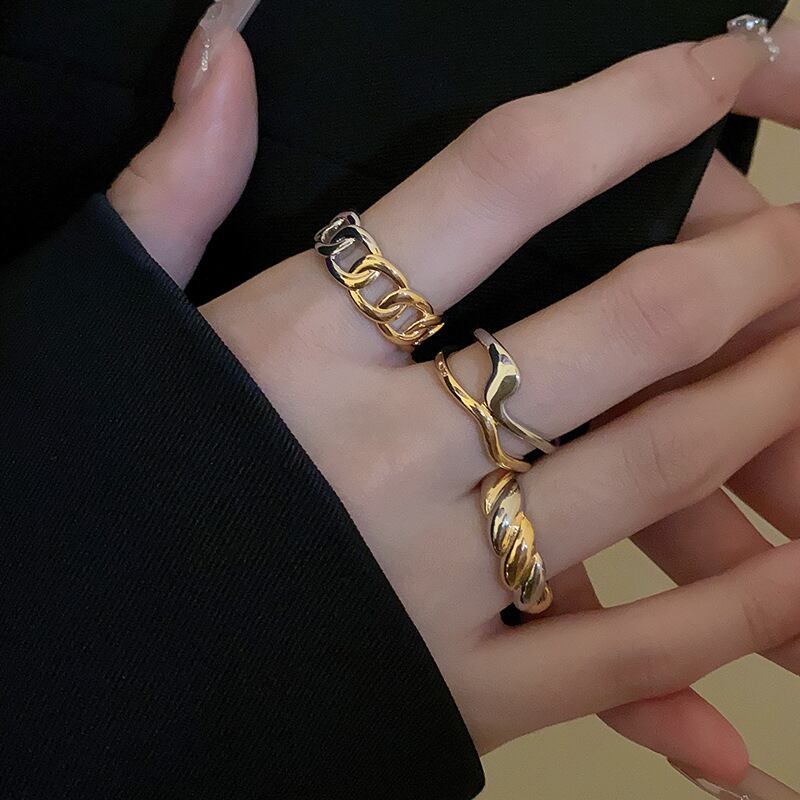 送料無料 KAITIN 不規則な開口部リングチェーンとセンス人差し指リング金属多用途アクセサリー女性 指輪 AE88788722408495601