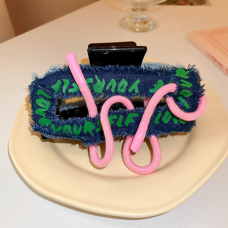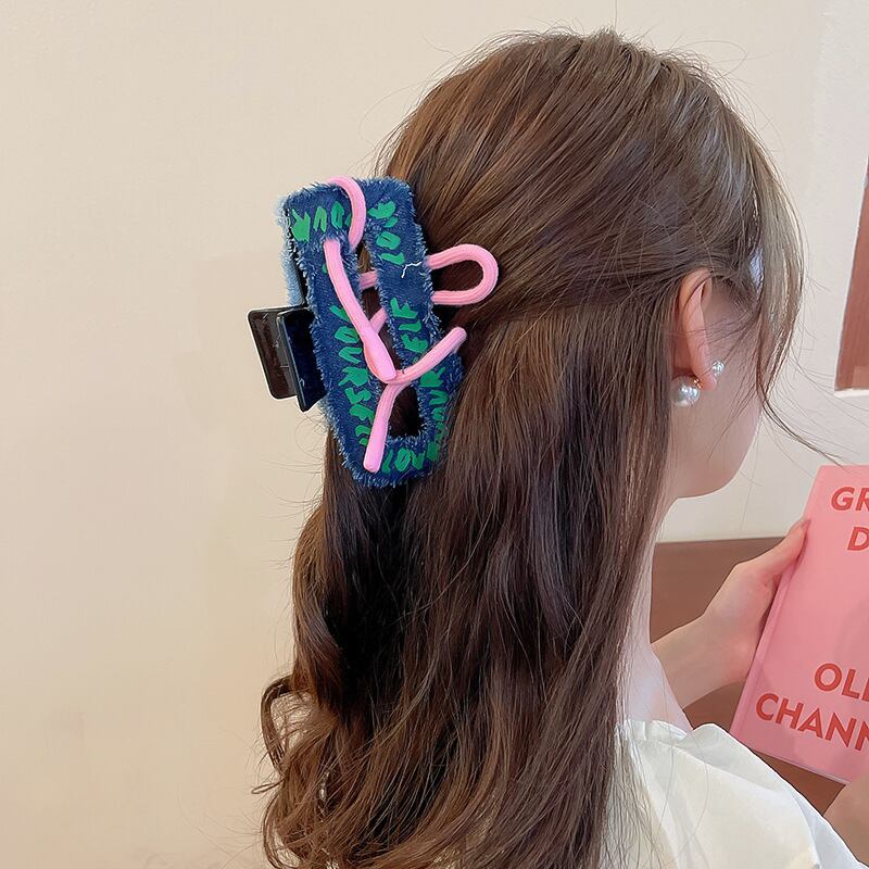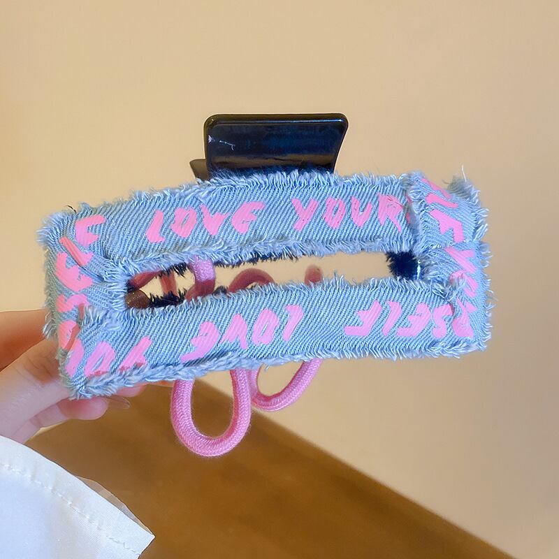 送料無料 両面デニムレターヘアクリップ女性の気質ヘアピンブルー帽子多用途女の子のヘアアクセサリー AE88788718168921462