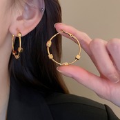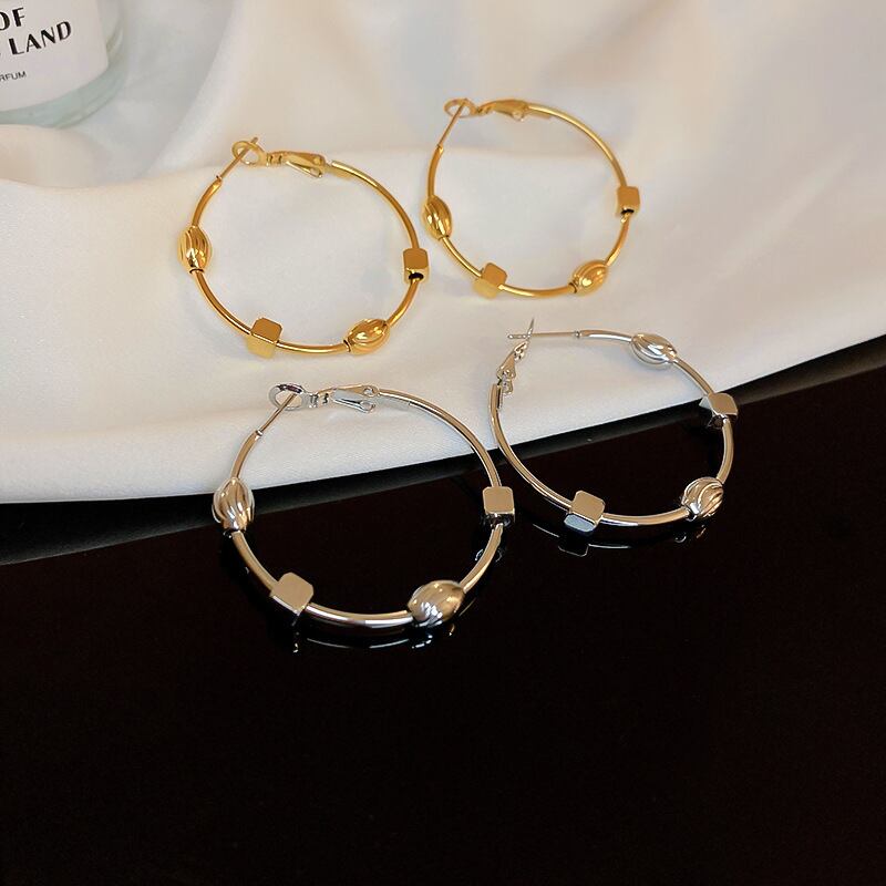 送料無料 KAITIN チタン鋼スクエアオーバルビーズ女性イヤリング誇張金属感シンプルなフープイヤリング女性 指輪 スクウェア AE88788753948506364