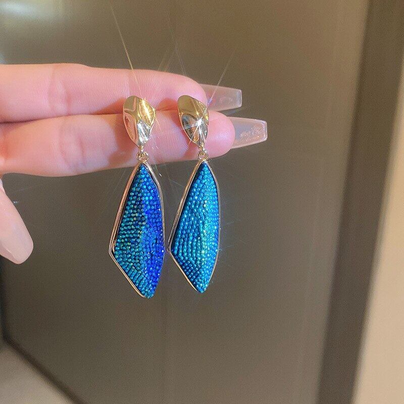 送料無料 KAITIN 不規則な幾何学的なブルーステートメントイヤリング女性ライト高級レトロシルバー針イヤリング気質ジュエリー 指輪 銀 AE88788735834660799