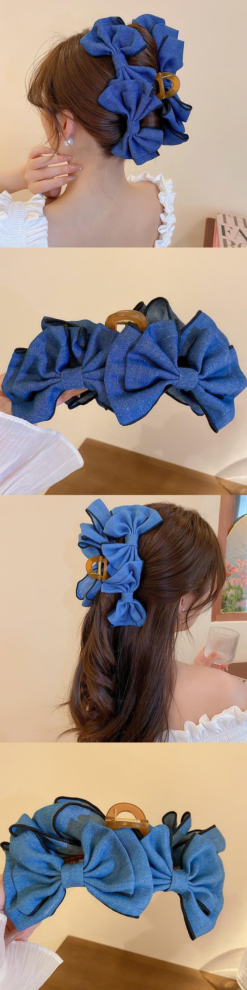送料無料 KAITIN 女性の髪の爪ブルーちょう結びヘアクリップガール大型ヘアピン帽子ヘアクリップヘアジュエリー リボン 大きめサイズ AE88788715329350455