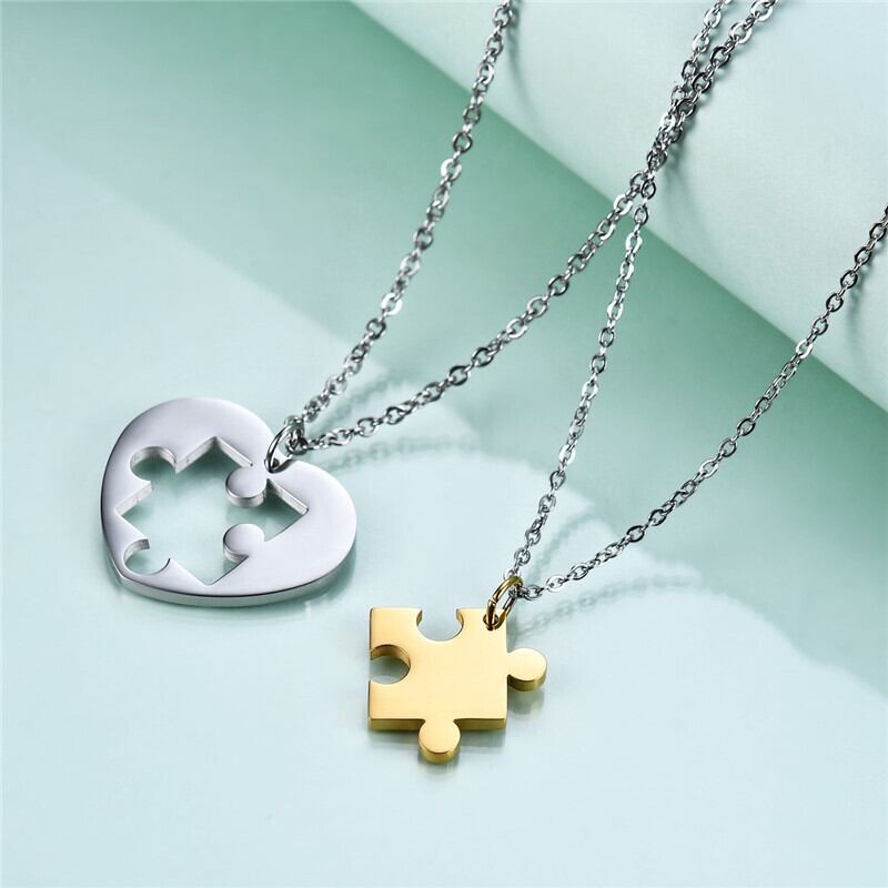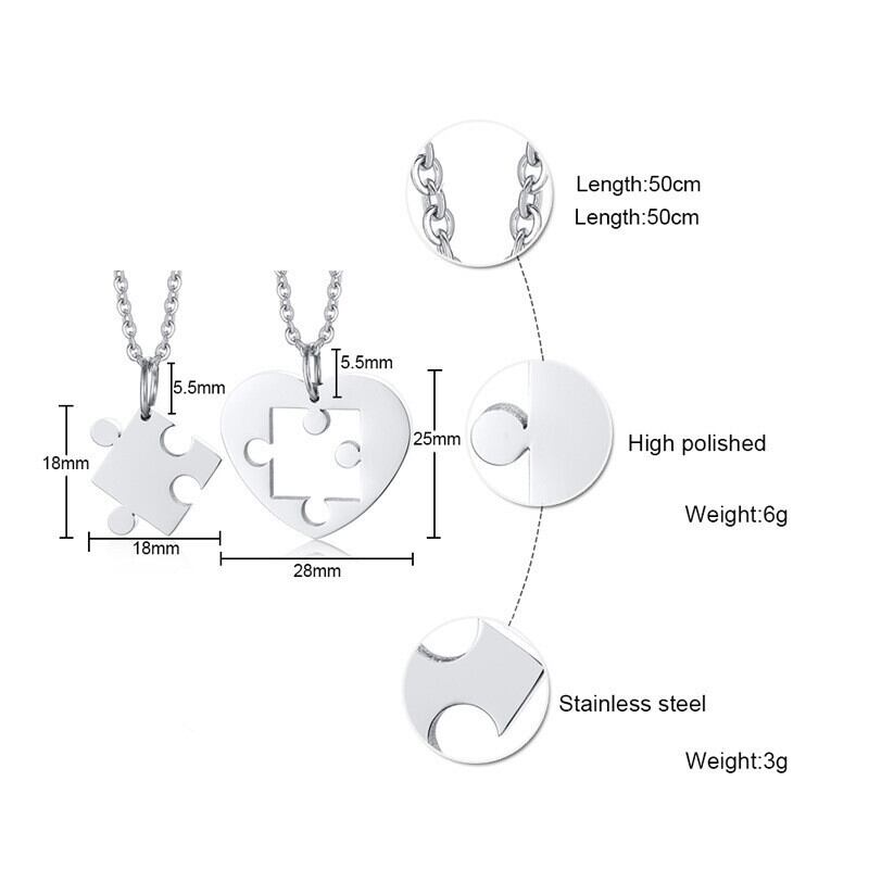 送料無料 KOtik 2 ピース/セットハートパズルペンダントネックレス女性男性ステンレス鋼カップルウェディングジュエリーネックレス レース AE121266778835573606391