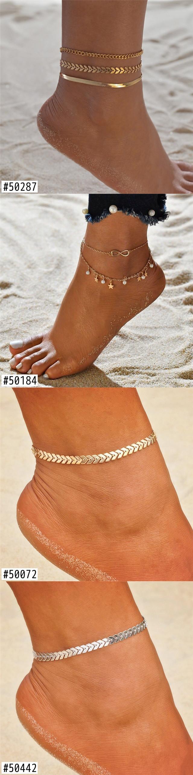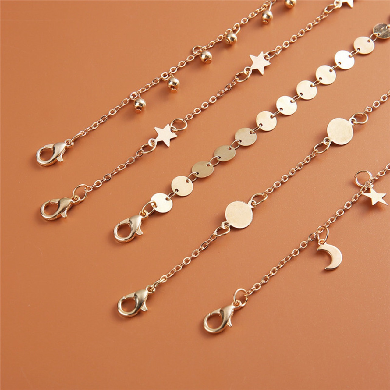 送料無料 KOTiK 6 ピース/セットゴールドカラースパンコール星雷アンクレットビーズムーンオンフットアンクルブレスレット女性 AE12126677888960570770